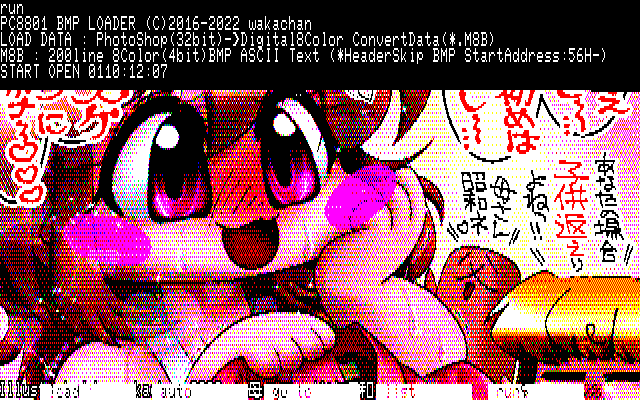 ![【デジタル8色アナログ16色】アナログ16色(16colors Dithering)版、フィルタかけて色味が調整されたせいか、逆にパレットは拾い易かったみたいな…(^_^;) [MAG形式][ZIM形式]](../cglib/uoaw2022/showamodemama.png)