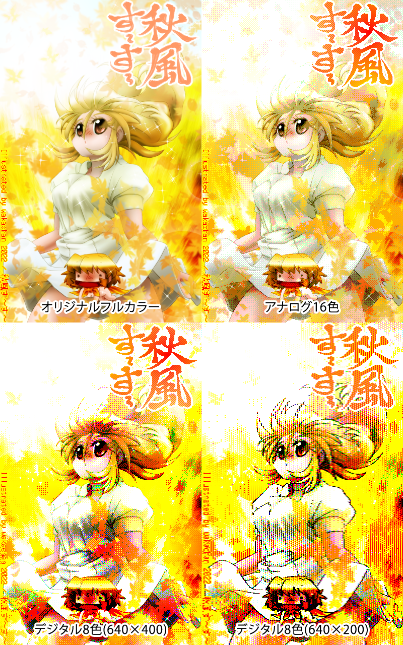 ![【デジタル8色アナログ16色】アナログ16色(16colors Dithering)版、この配色ですから収まりイイだろうと思ってました、確かに今回は16アナログ16色はまとまりがよろしい(^_^;) [MAG形式][ZIM形式]](../cglib/uoaw2022/akikazesusu.png)