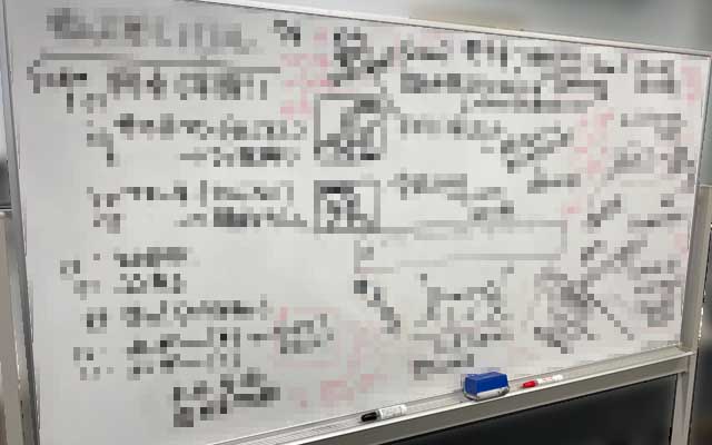 書かれている内容はあちこちバラバラなれど、俯瞰出来れば位置とかはあまり関係無いんですよねー、つながりが示せてれば…(^_^;)あと、なるべく消さずに残すのも重要で、後で生きてくるコトもあるので、横線引く程度で…で、まとまったと思ったら写真に撮っておけば、それで議事録にもなるし…(^_^;)